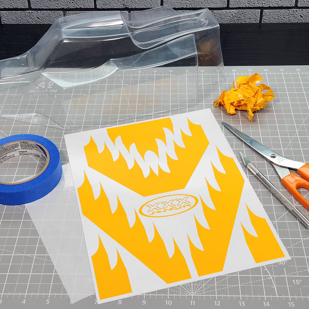 Pre-cut vinyl RC Paint Masks are the easiest way to slap a gnarly paint scheme down without having killer talent. Stick the mask pieces into your body and hit some paint; it doesn't get any easier! Paint like a pro even when you are not.